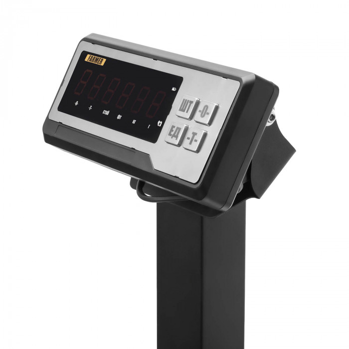 Складная стойка облегчает размещение весов в рабочем пространстве и снижает требования к месту установки. LED-дисплей с крупными символами 11×20 мм остаётся хорошо видимым под разными углами и в условиях низкой освещённости. Кнопочная клавиатура обеспечивает удобный доступ к ключевым функциям: обнулению, выбору единиц измерения, работе с тарой и счётному режиму. При превышении предельной нагрузки весы подают звуковой и визуальный сигнал, защищая датчик от повреждений.